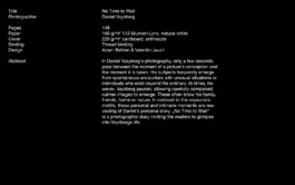 In Daniel Vasyberg‘s photography, only a few seconds pass between the moment of a picture‘s conception and the moment it is taken. His subjects frequently emerge from spontaneous encounters with unusual situations or individuals who exist beyond the ordinary. At times, however, Vaysberg pauses, allowing carefully composed, calmer images to emerge. These often show his family, friends, home or nature. In contrast to the voyeuristic motifs, these personal and intimate moments are reavealing of Daniel‘s personal story. „No Time to Wait“ is a photographic diary inviting the readers to glimpse into Vaysbergs life.